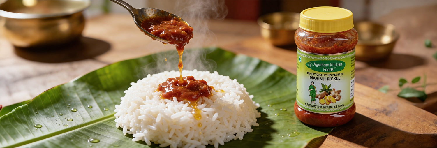 - Pickles & Thokkus — Traditional pickles, rice mixes, and relishes including Avakkai, Lemon, Gongura, Mango Thokku, and more
